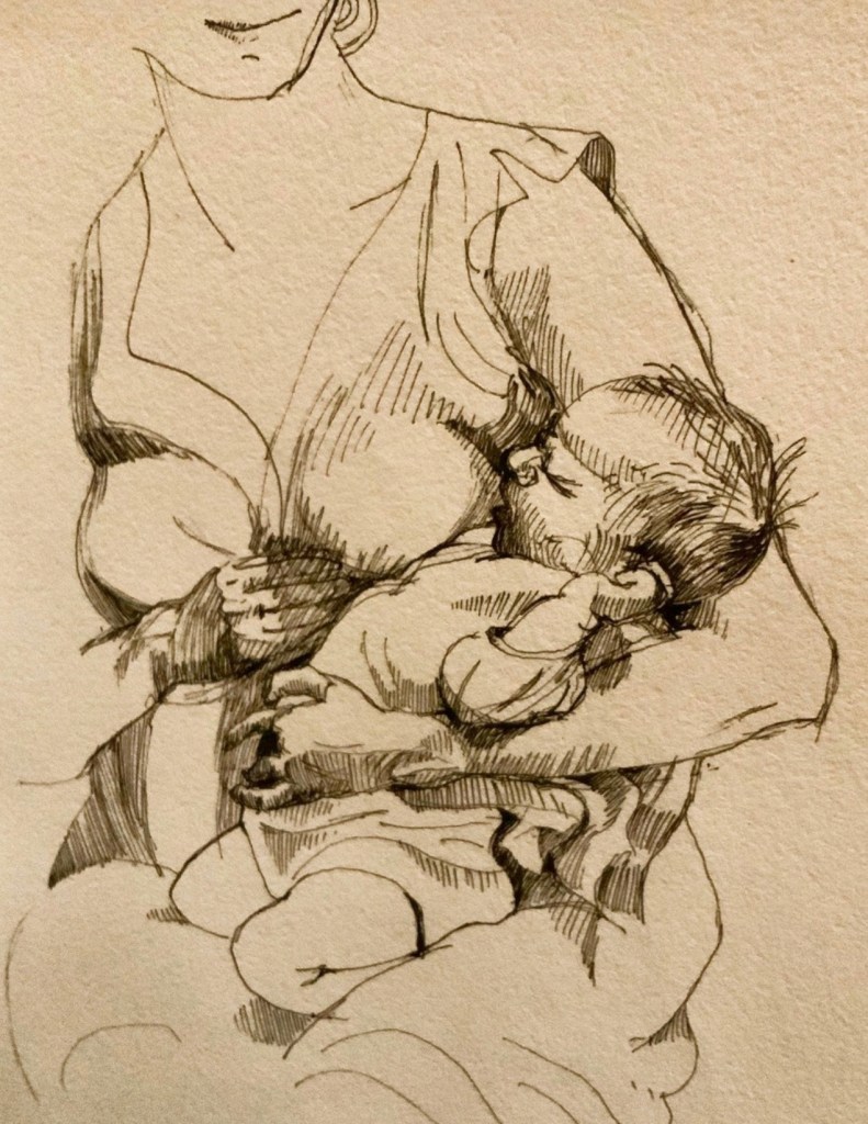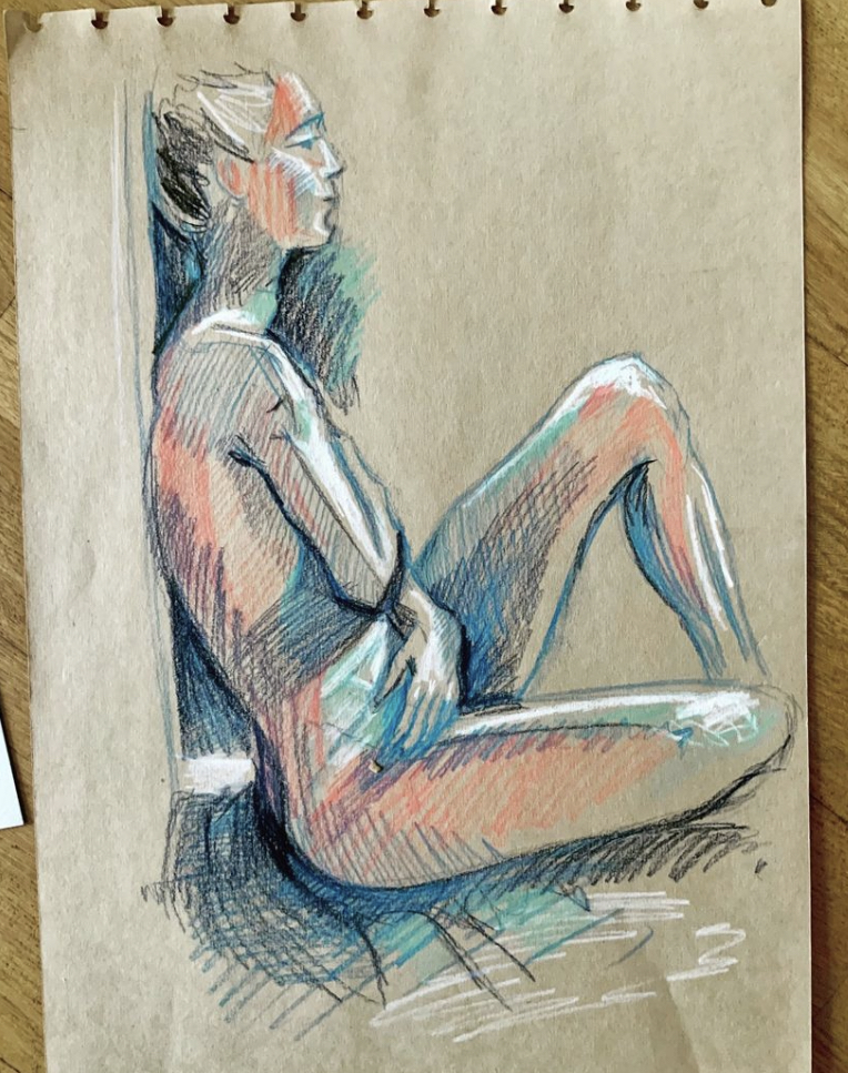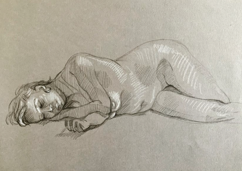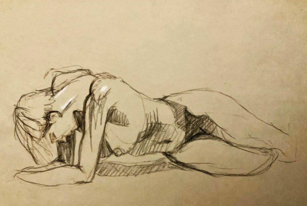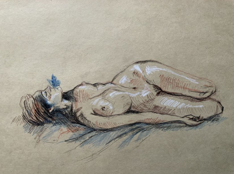 Marie-Amandine a depuis petite le goût du dessin qu’elle pratique régulièrement. La grande majorité de ses dessins sont faits d’après motifs. C’est une manière pour elle de rentrer dans la réalité qui l’entoure par la contemplation, mais aussi aux moments les plus surchargés de sa vie, de garder un lien avec sa pratique artistique. Prendre le temps de se poser pour apprendre à voir par le dessin est une forme de résistance à la course du monde. Le dessin lui sert de base à tout travail.